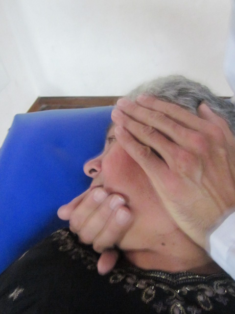 | Sujetando la zona maxilar y la otra mano en la occipital, se logra la tracción cervical. |